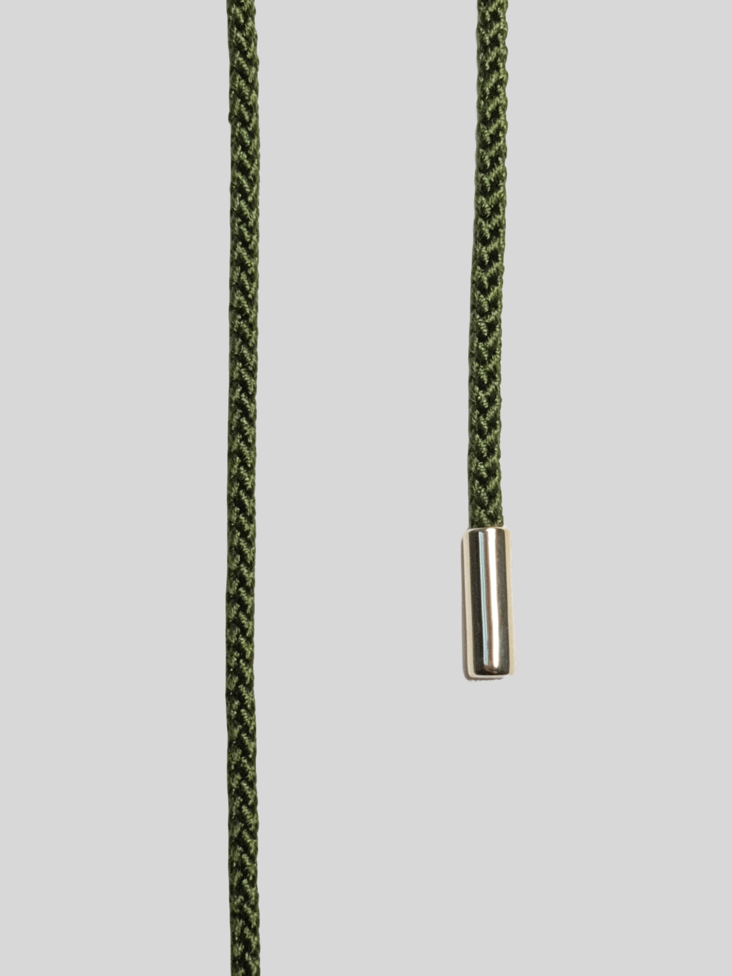 Today, our silk cords retain this heritage, handcrafted in Japan with silver and gold end pieces. This playful piece of jewellery offers versatile wearing options and can be paired with various colors. You can tie the cord around your wrist or neck, with or without a pendant.