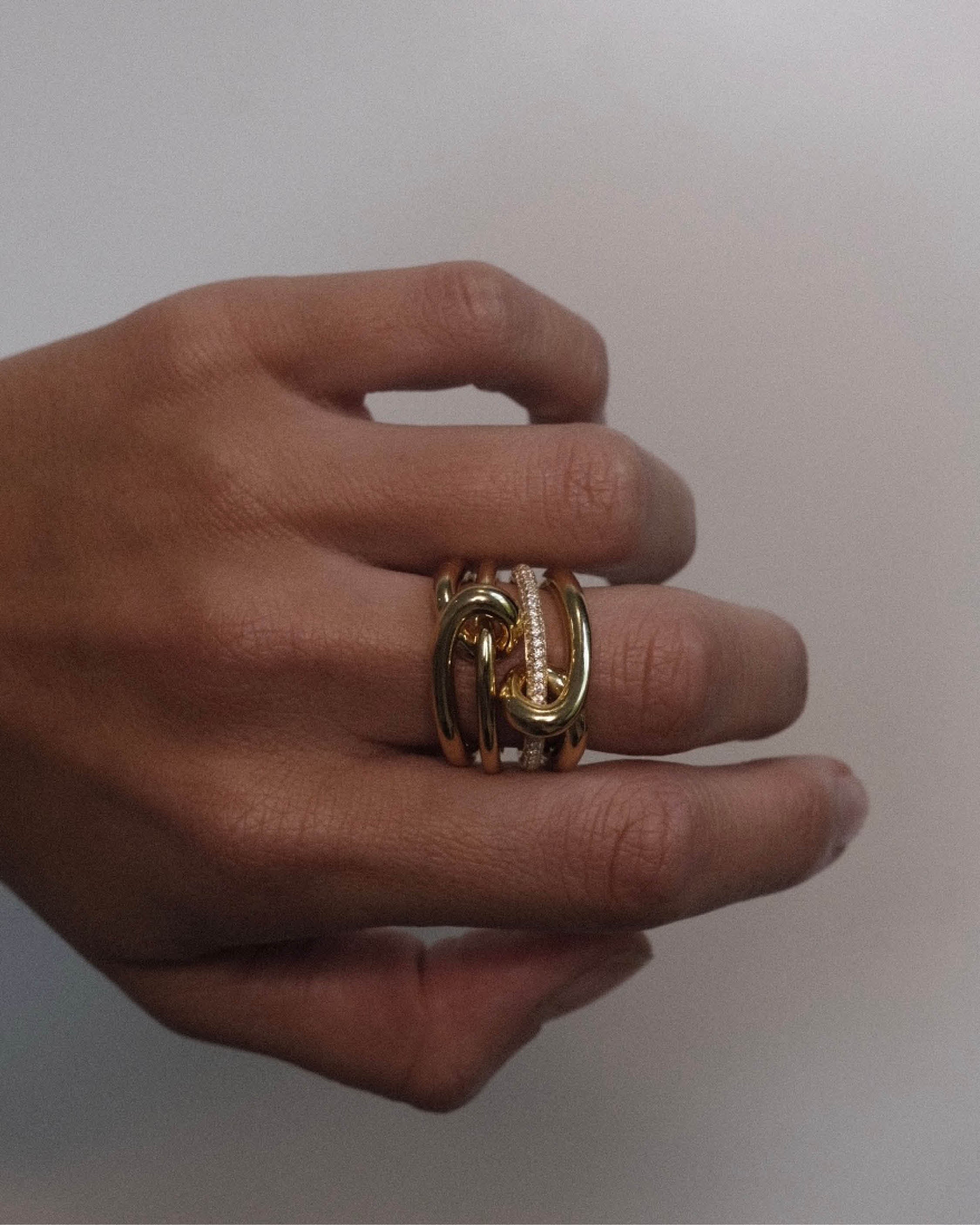 The Dusk Ring is a playful piece that celebrates twilight, inspired by the moment when the sun meets the horizon. Its design features one ring twirling around the other, capturing the timeless beauty of dusk. Perfect for stacking, it pairs beautifully with other Dusk Rings or Dawn Rings.