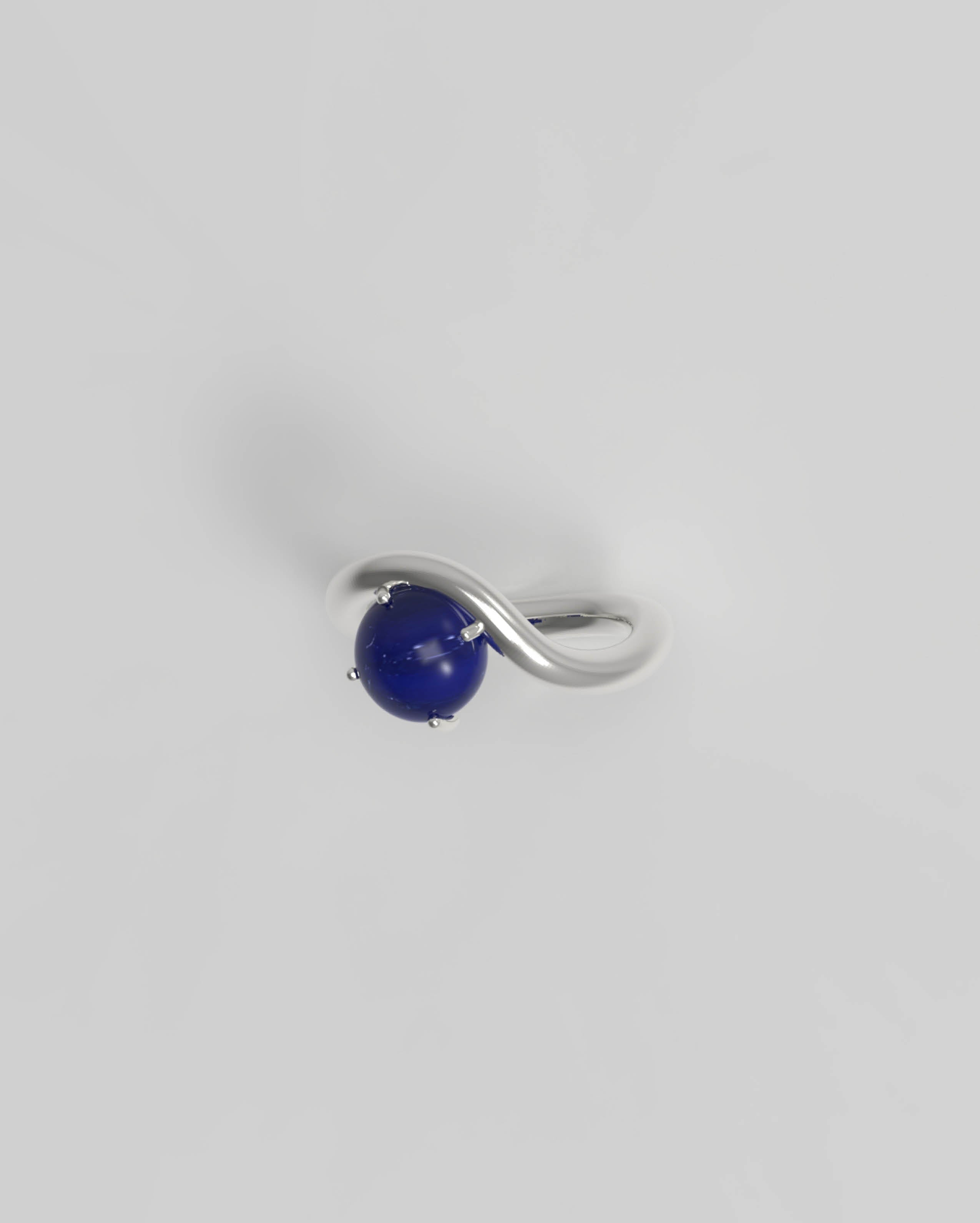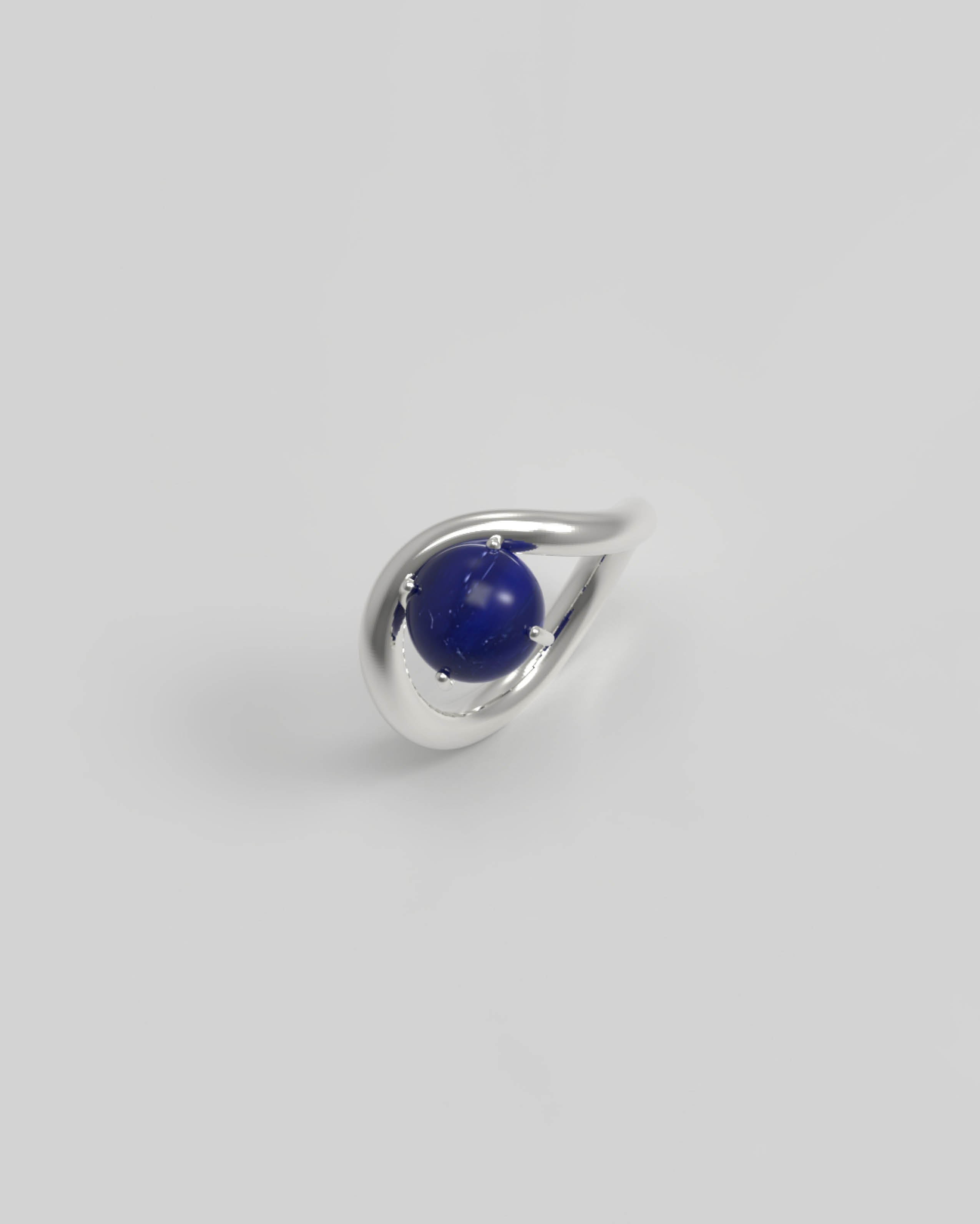 This ring holds the natural gemstone Lapis Lazuli, known for its deep blue hue speckled with golden pyrite. It symbolizes wisdom, truth, and inner peace.