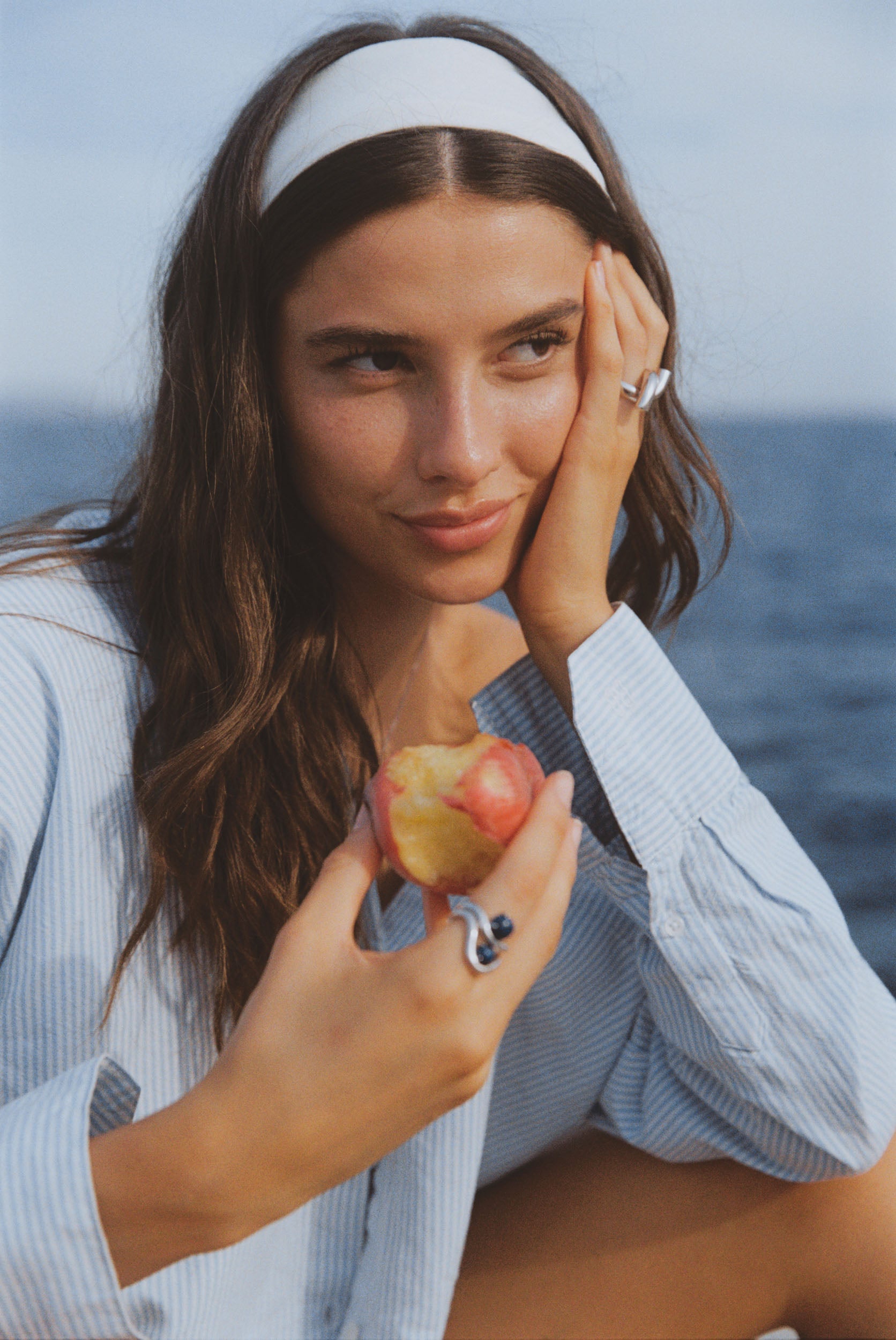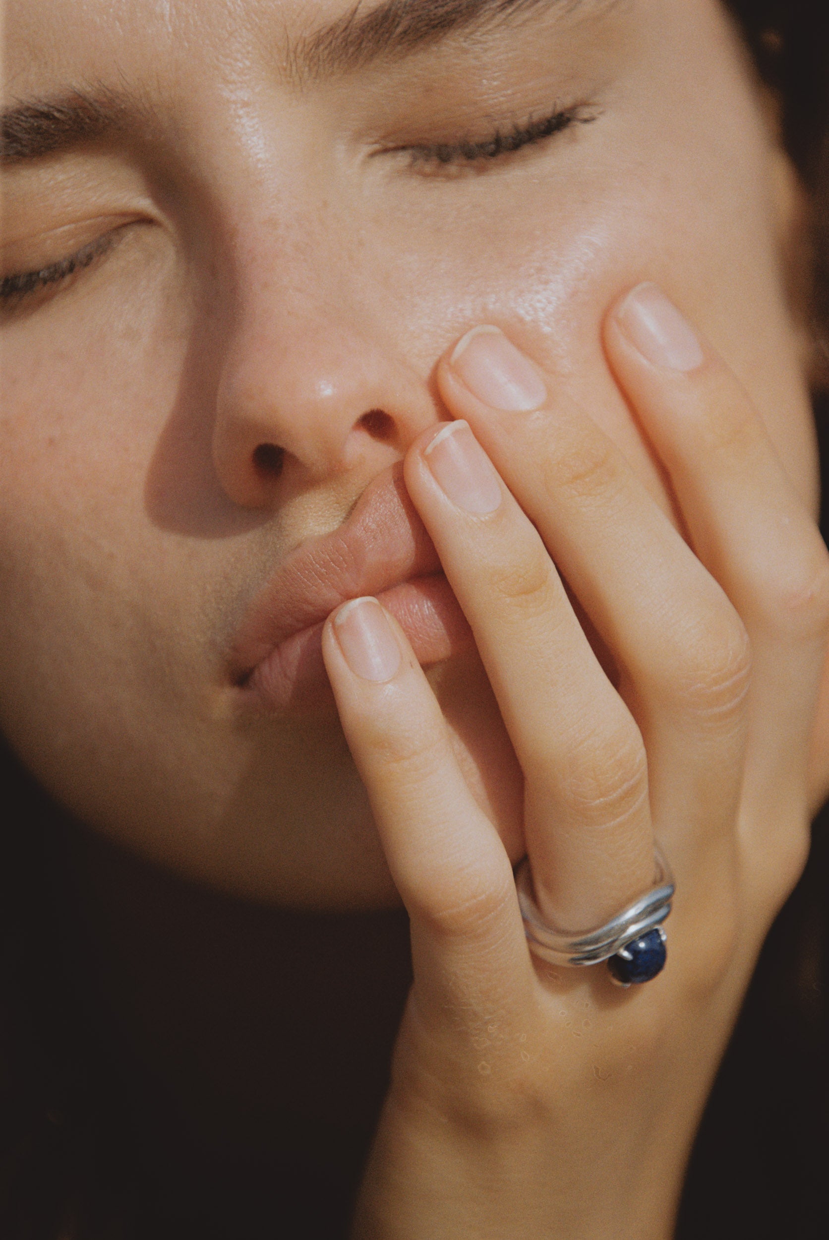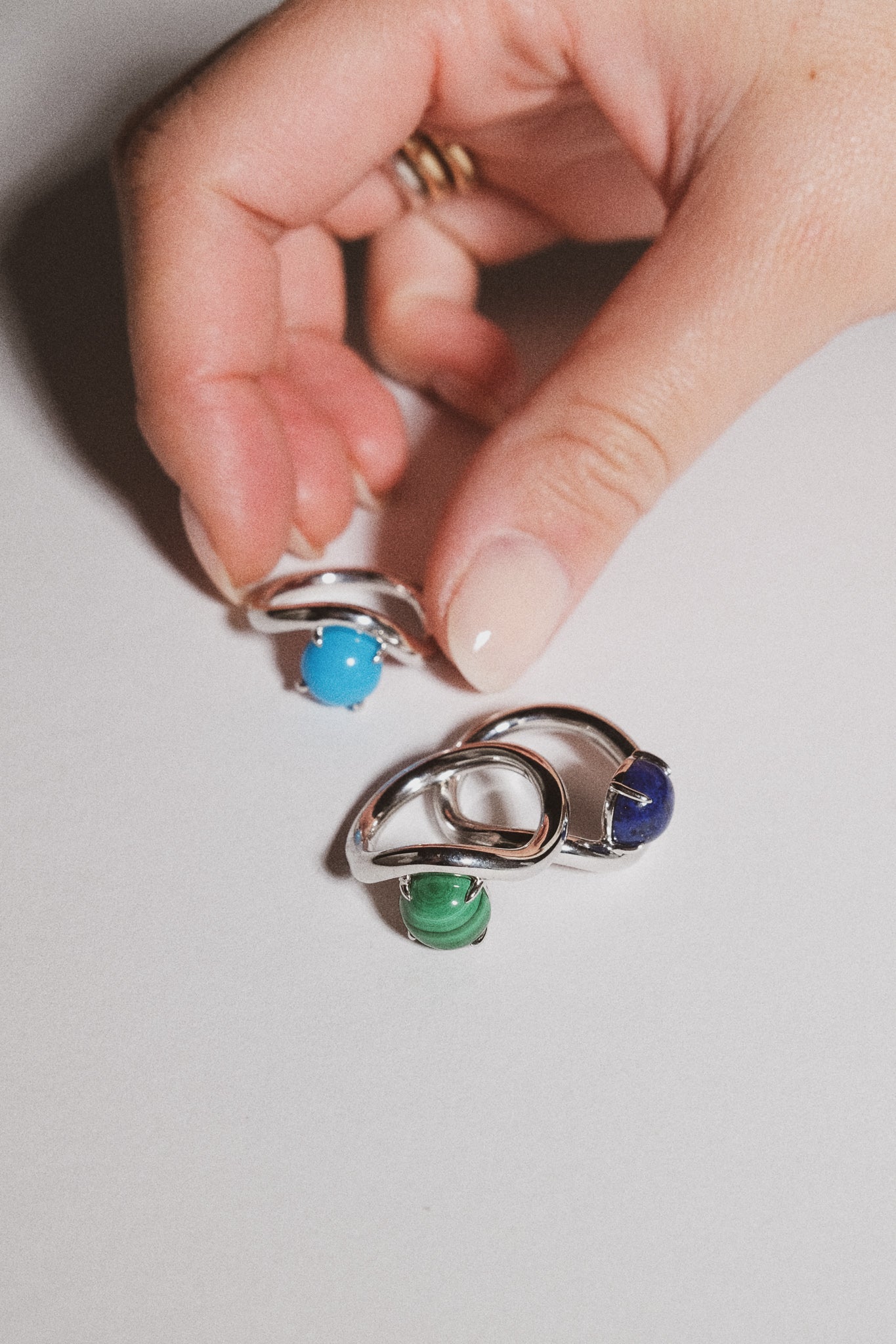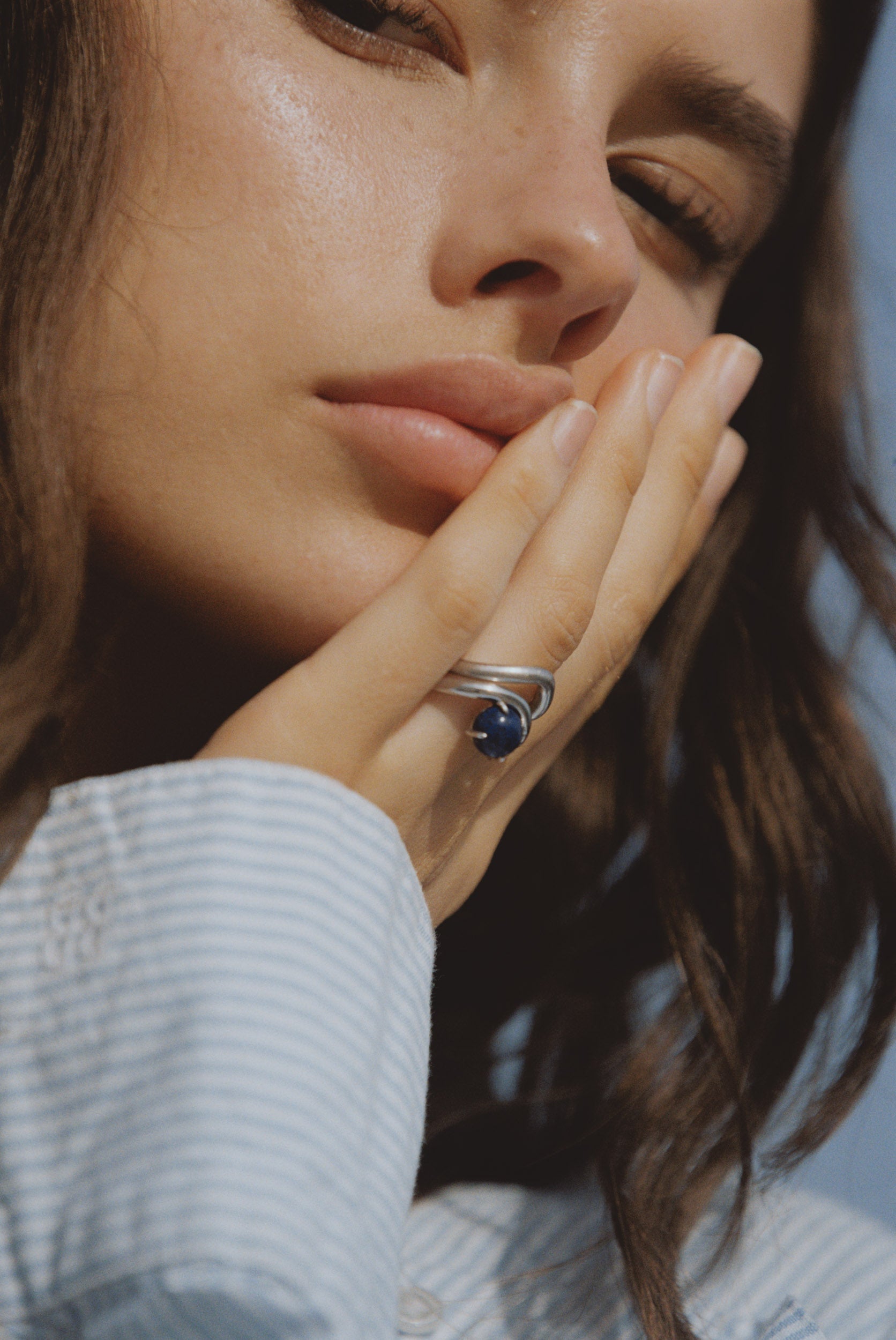The Band Ring Lapis offers a sleek and streamlined ring, providing a simpler and cleaner aesthetic. This versatile piece allows for personalization, as it can be stacked with both Thorn Band I and Thorn Band II, as well as with our other Band Ring I and II with gemstones.