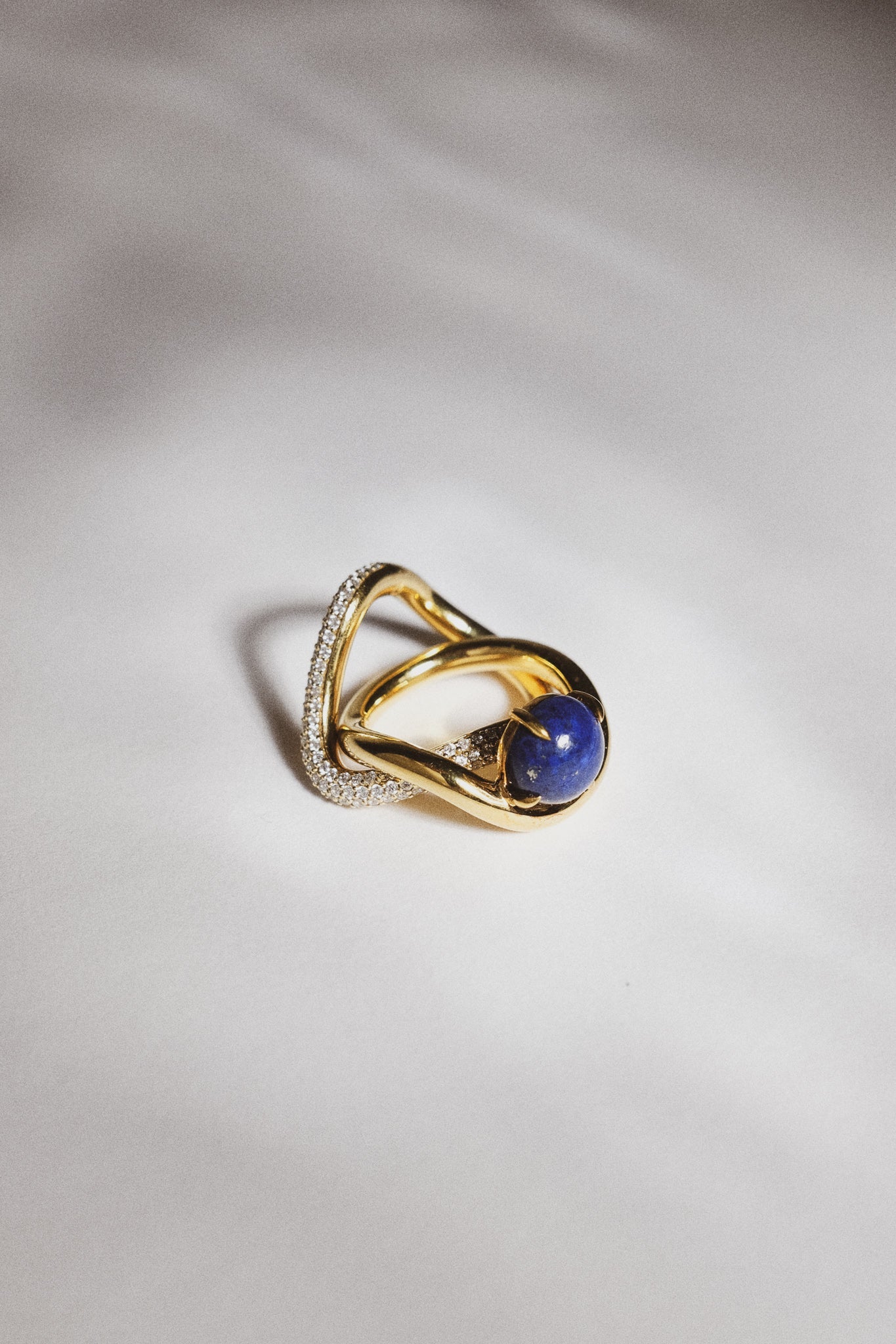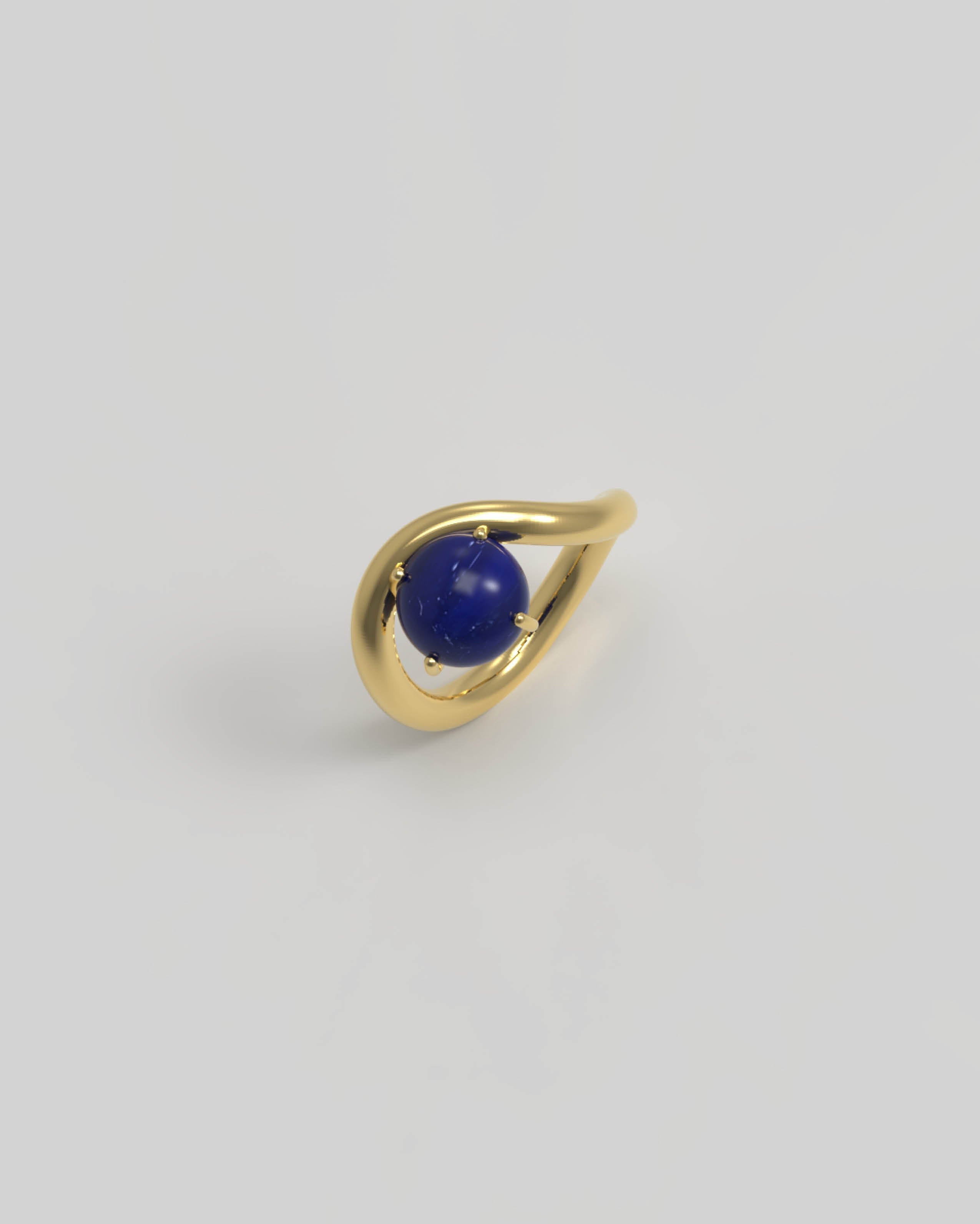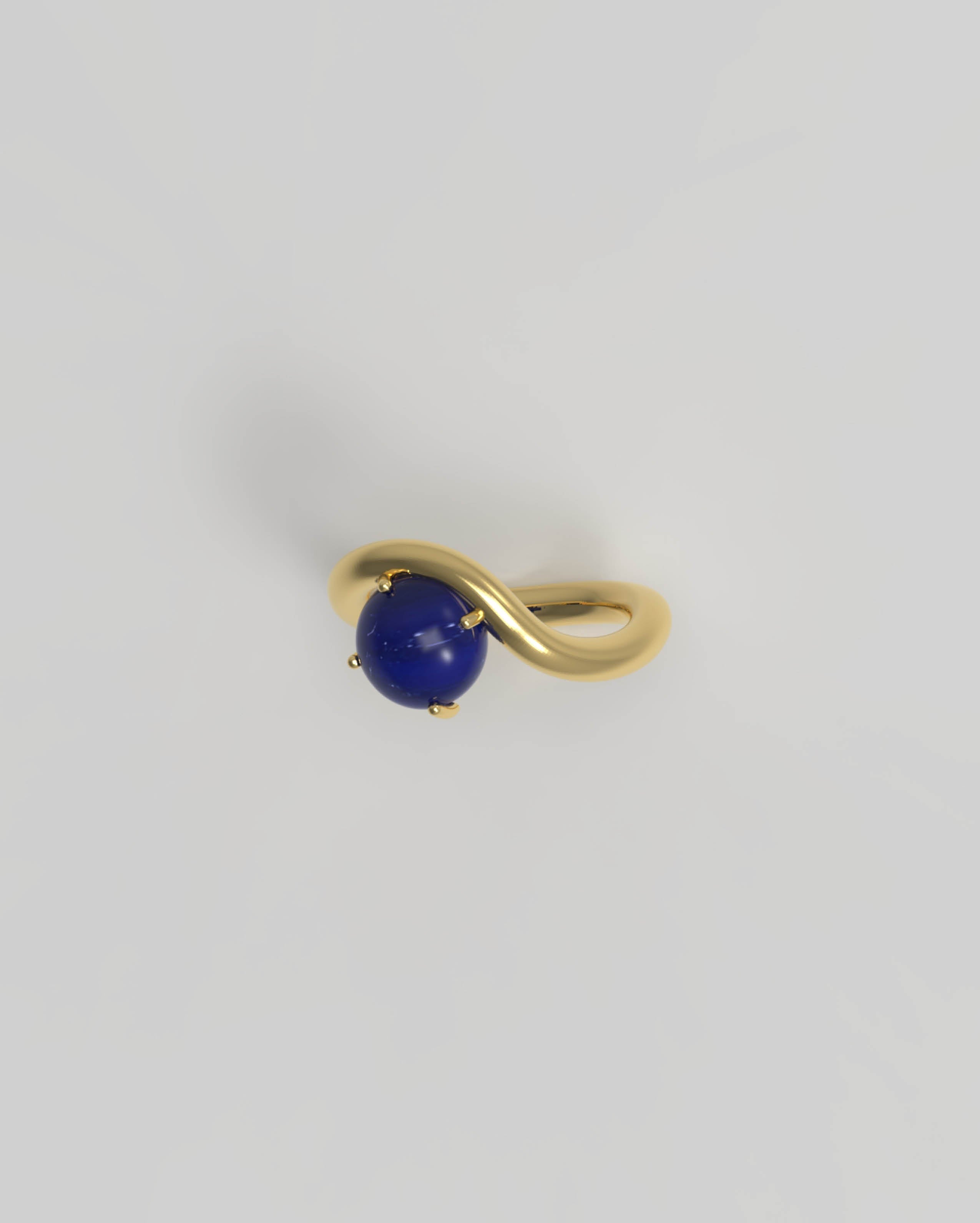 This ring holds the natural gemstone Lapis Lazuli, known for its deep blue hue speckled with golden pyrite. It symbolizes wisdom, truth, and inner peace.