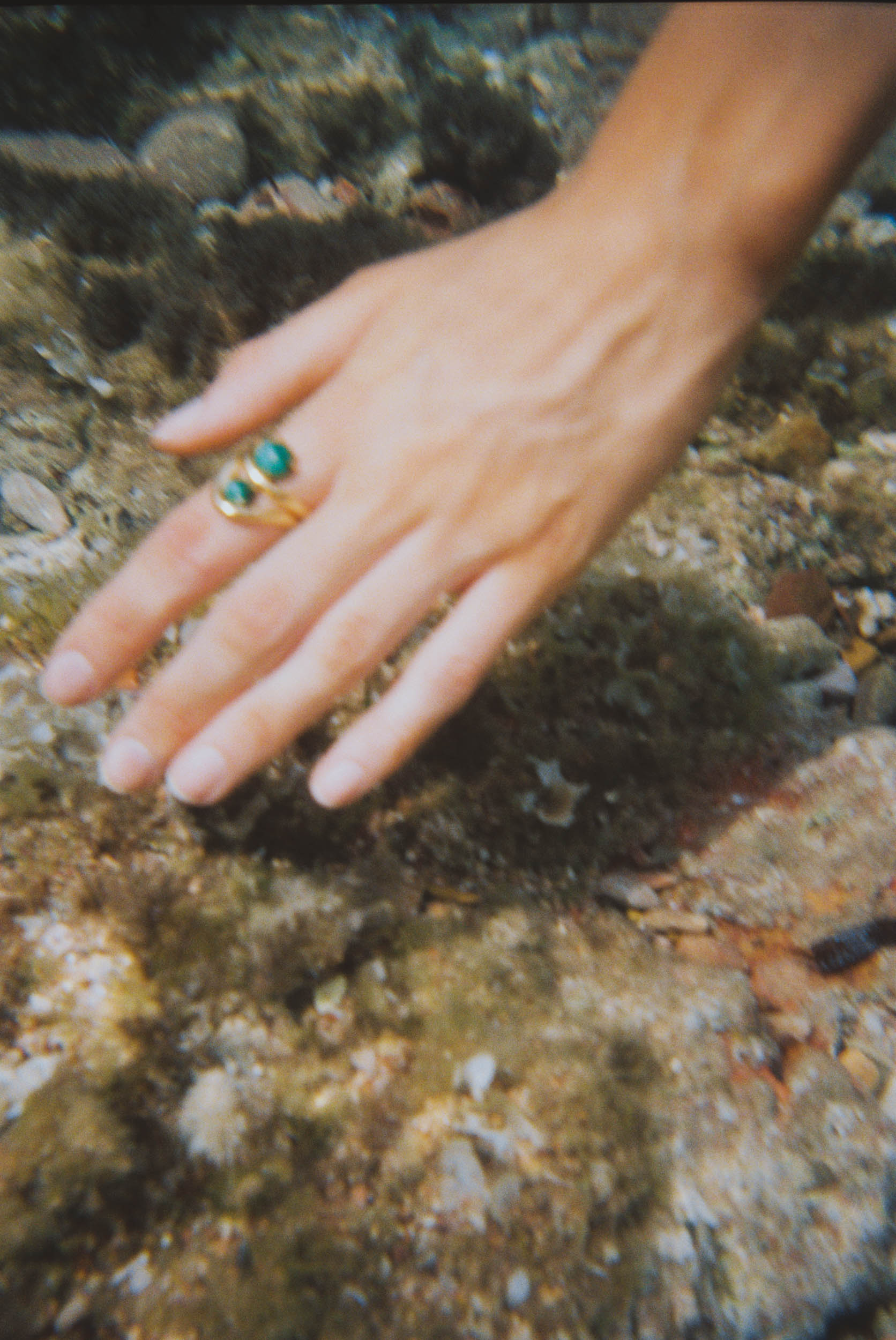 The Band Ring Malachite offers a sleek and streamlined ring, providing a simpler and cleaner aesthetic. This versatile piece allows for personalization, as it can be stacked with both Thorn Band I and Thorn Band II, as well as with our other Band Ring I and II with gemstones.