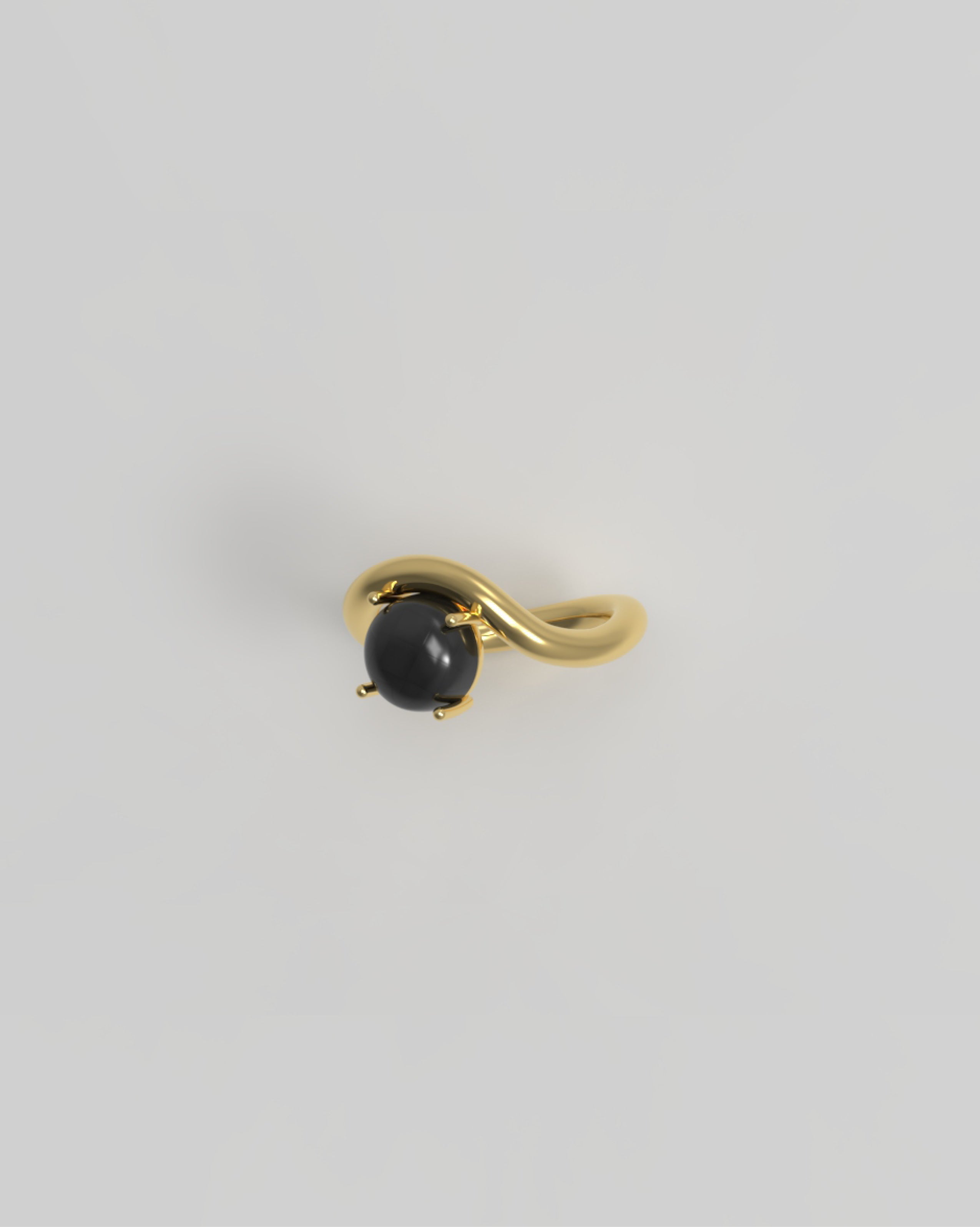 In the center of this ring is the natural gemstone Onyx, known for its rich, velvety black color.