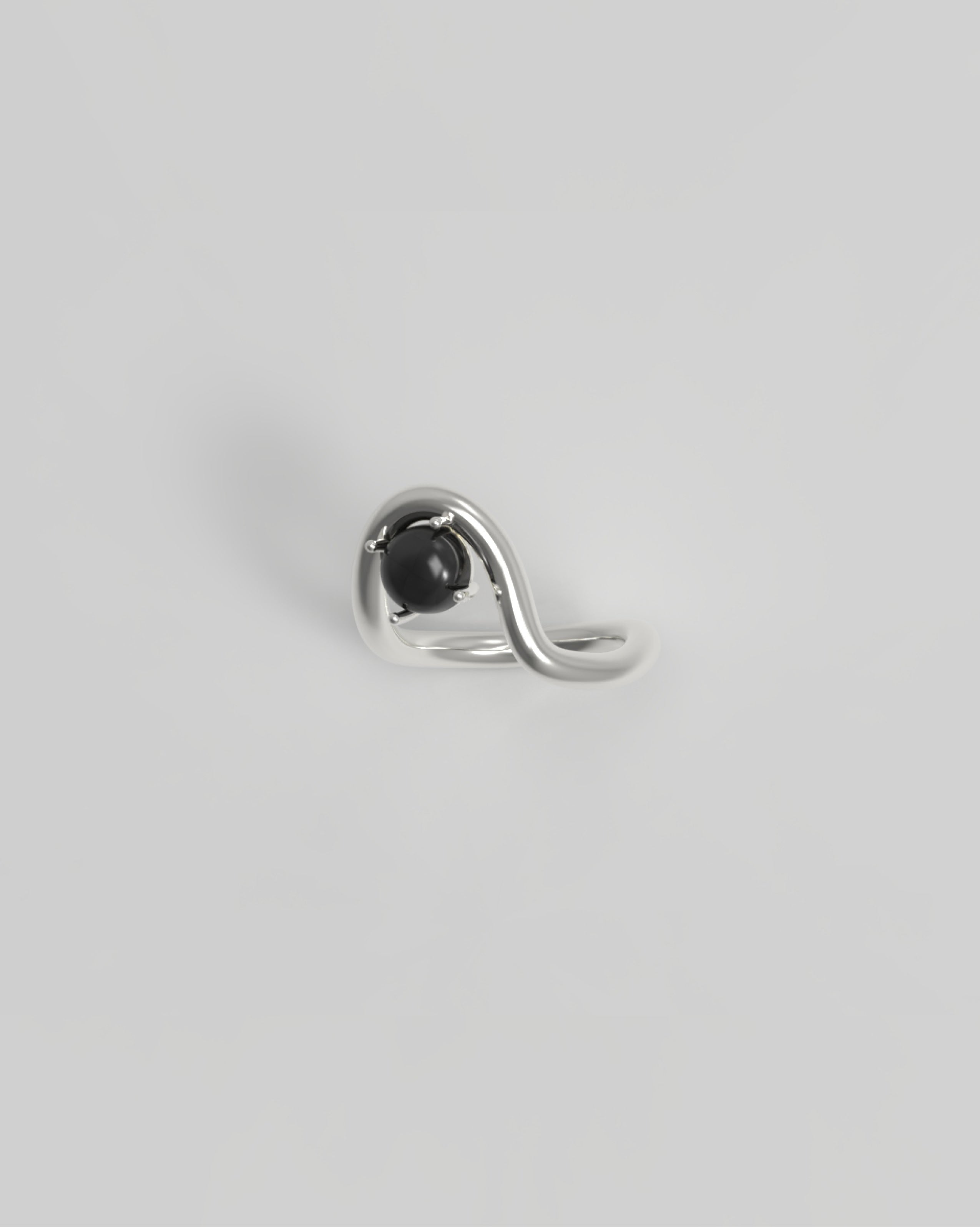 In the center of this ring is the natural gemstone Onyx, known for its rich, velvety black color.
