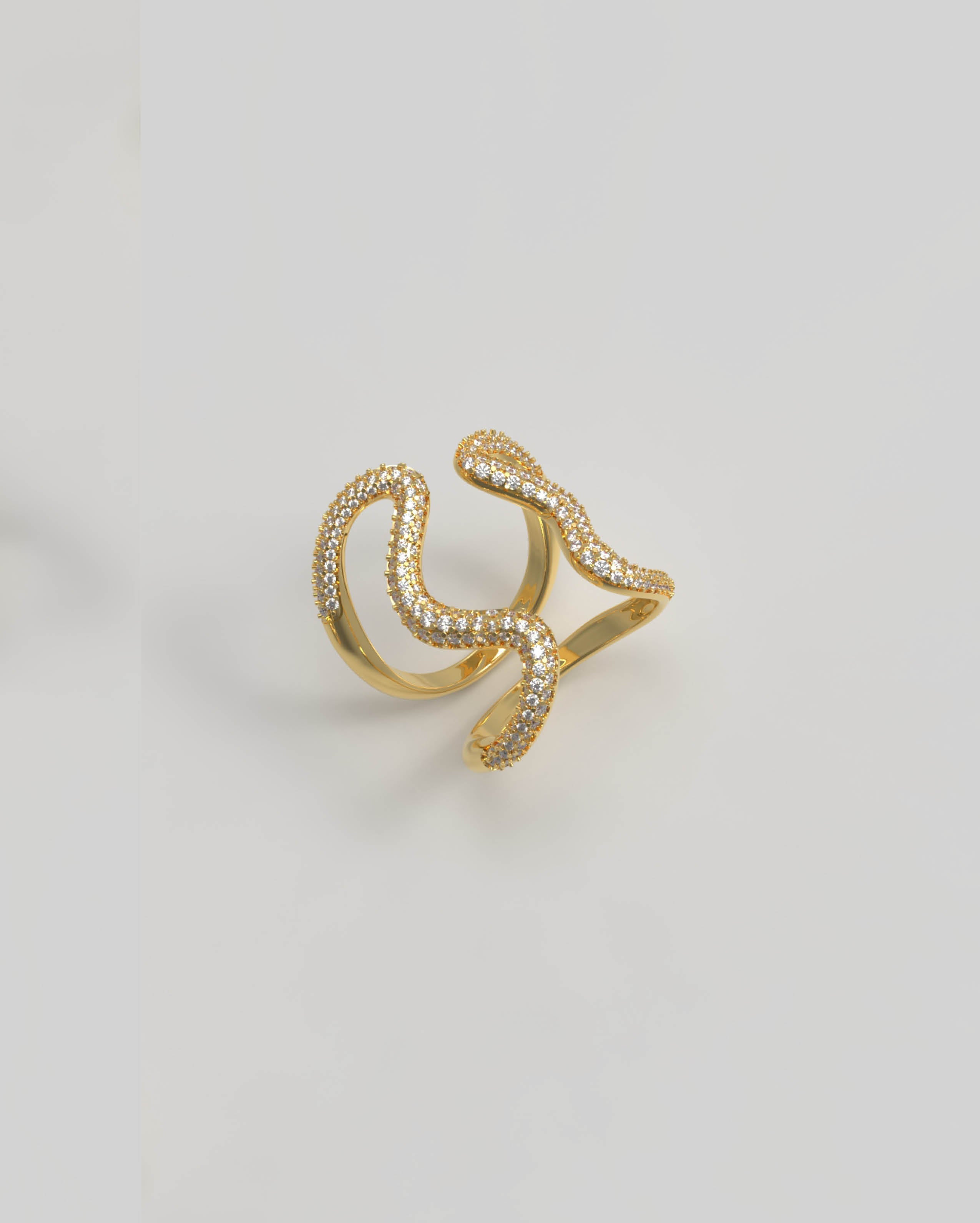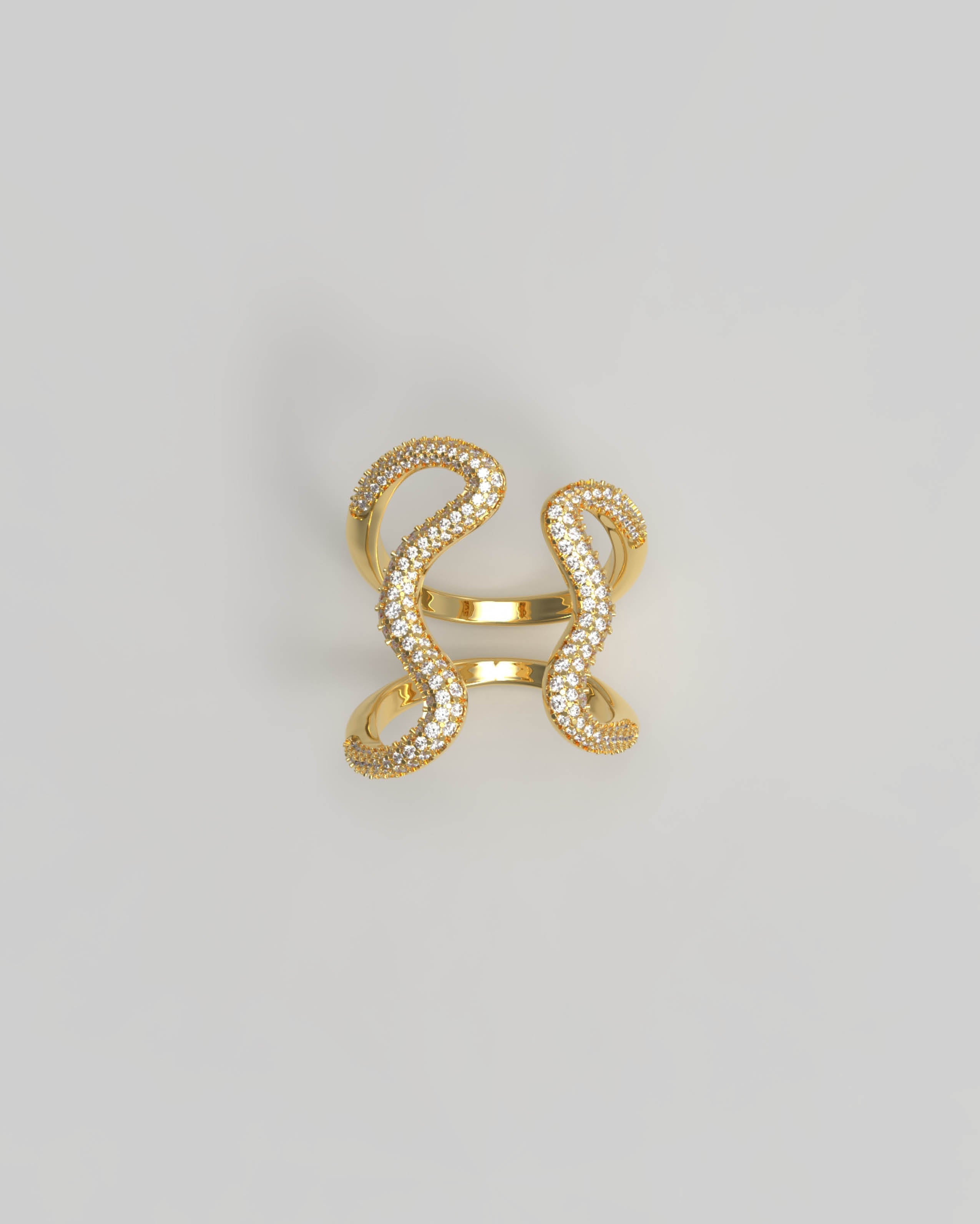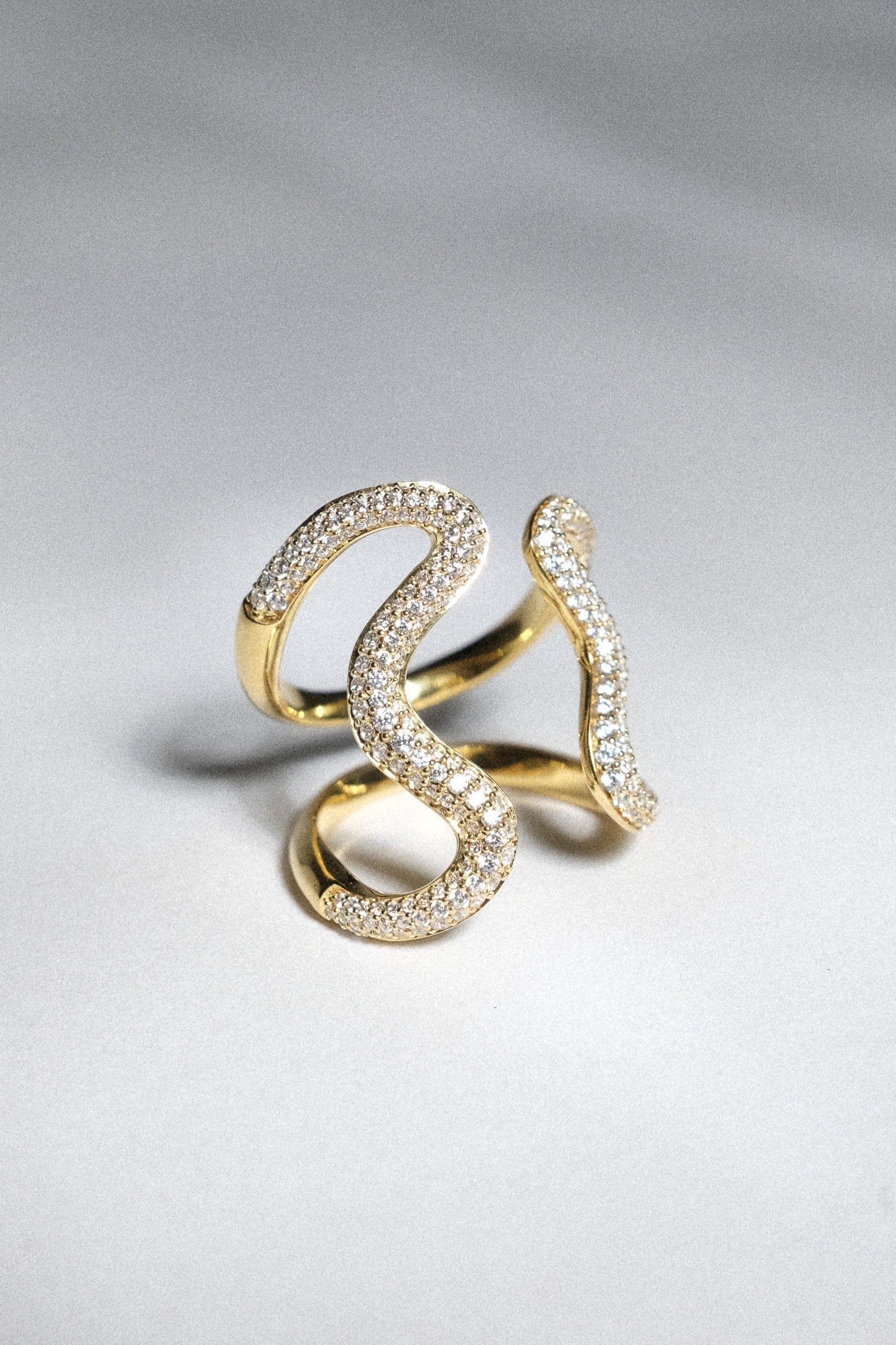 The Reef Ring is a playful piece crafted from a continuous diamonds paved band that wraps around the finger, inspired by the deep blue sea and its intricate wonders. Even though this ring covers a significant portion of the finger, it is designed for great comfort.