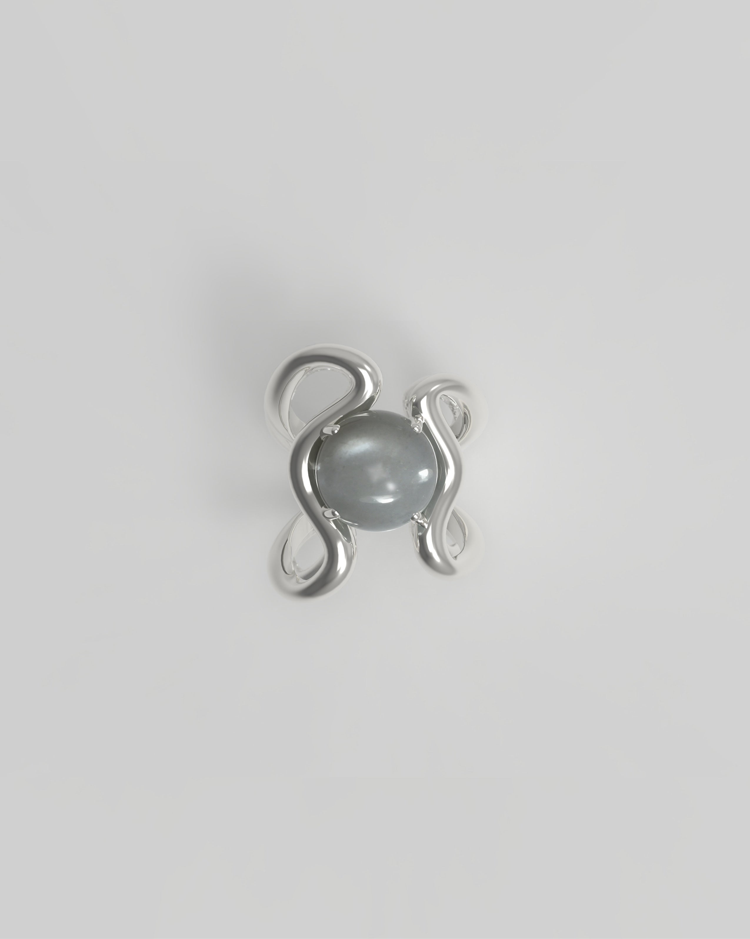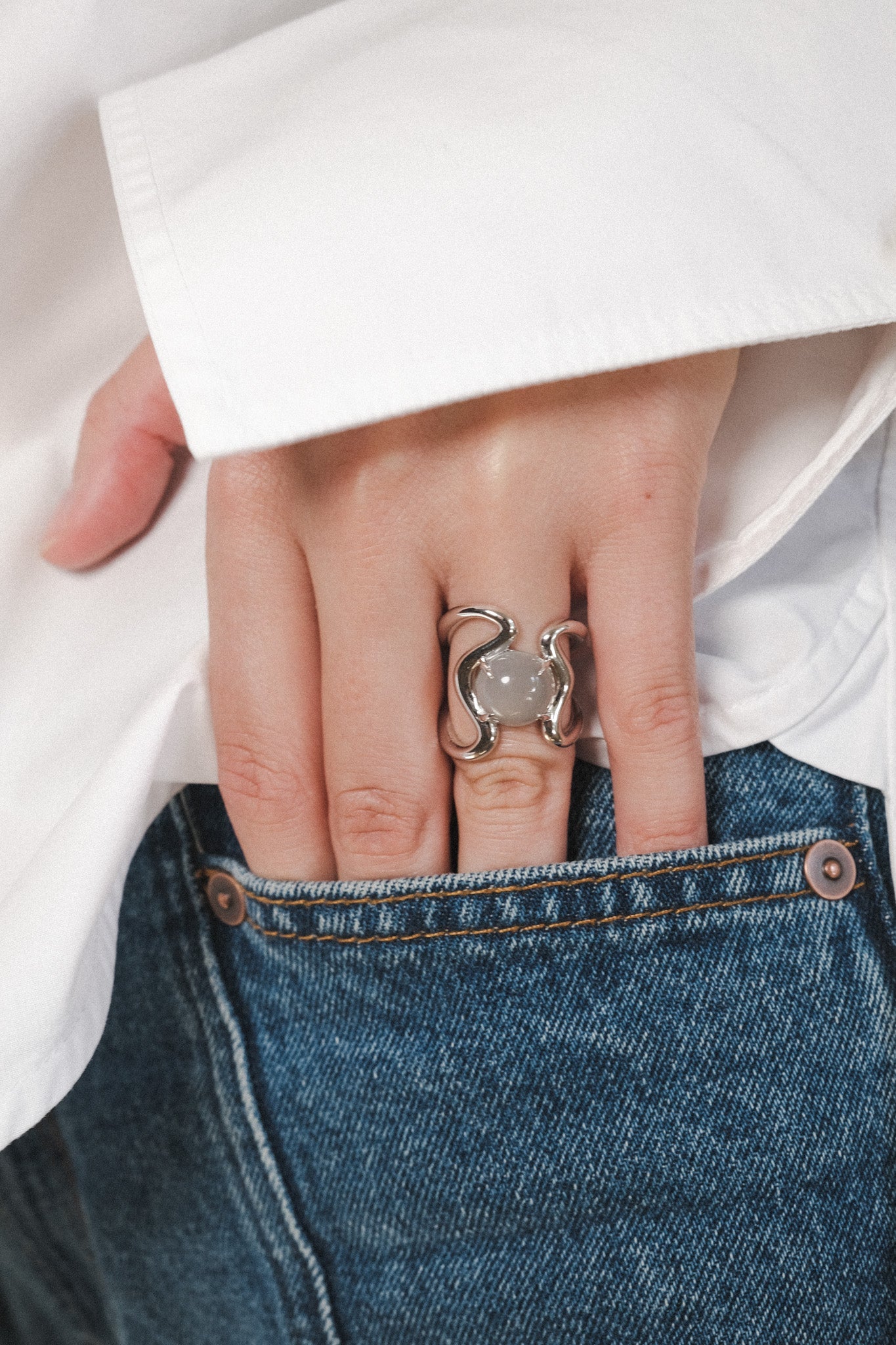 In the center of this ring is the natural gemstone Moonstone, known for its captivating glow that shifts from soft white to flashes of blue. Moonstone is cherished for its mystical beauty and calming energy, inspiring a sense of clarity, serenity, and emotional insight.
