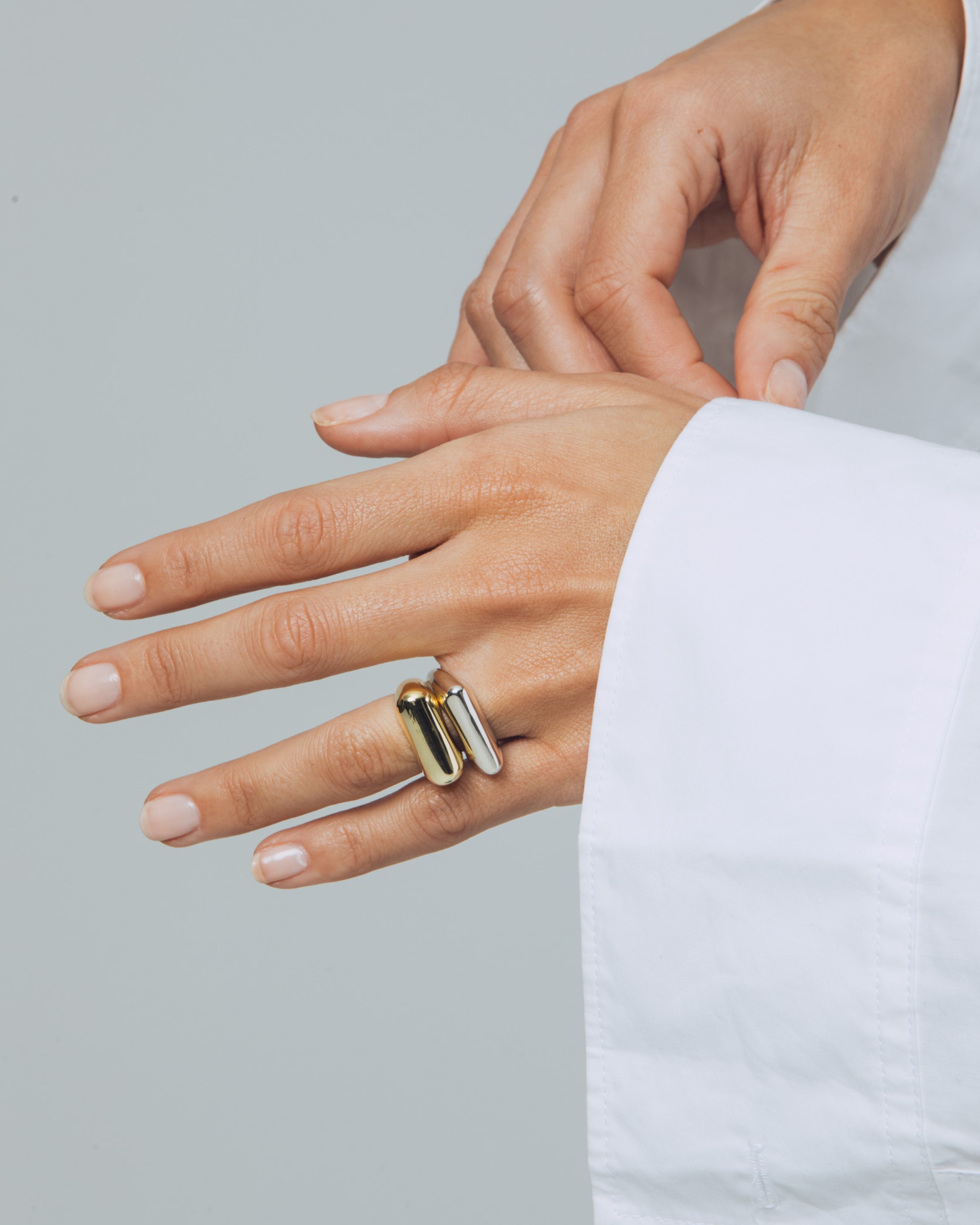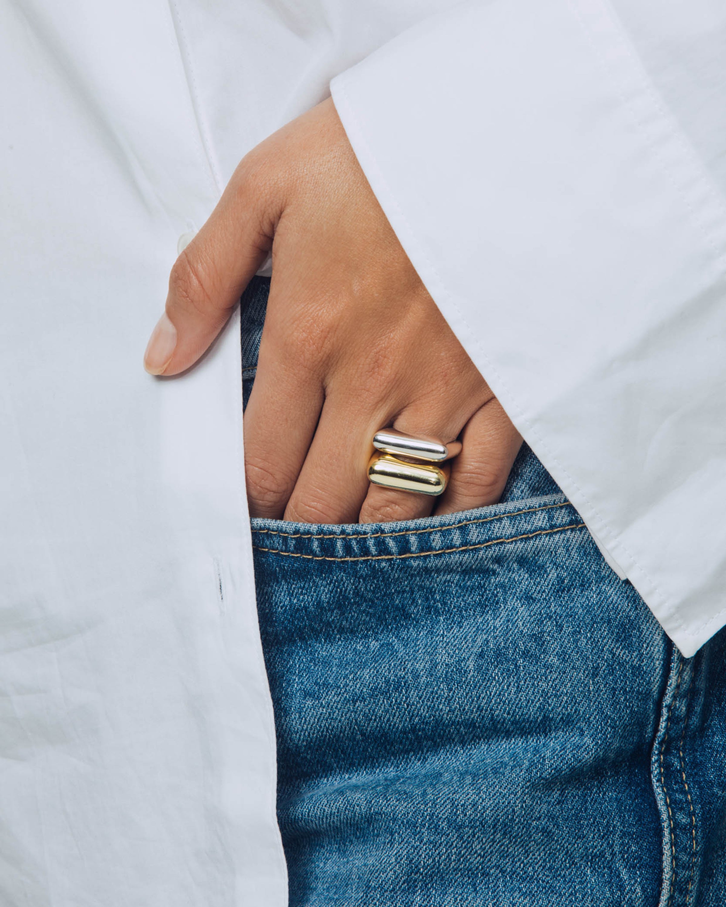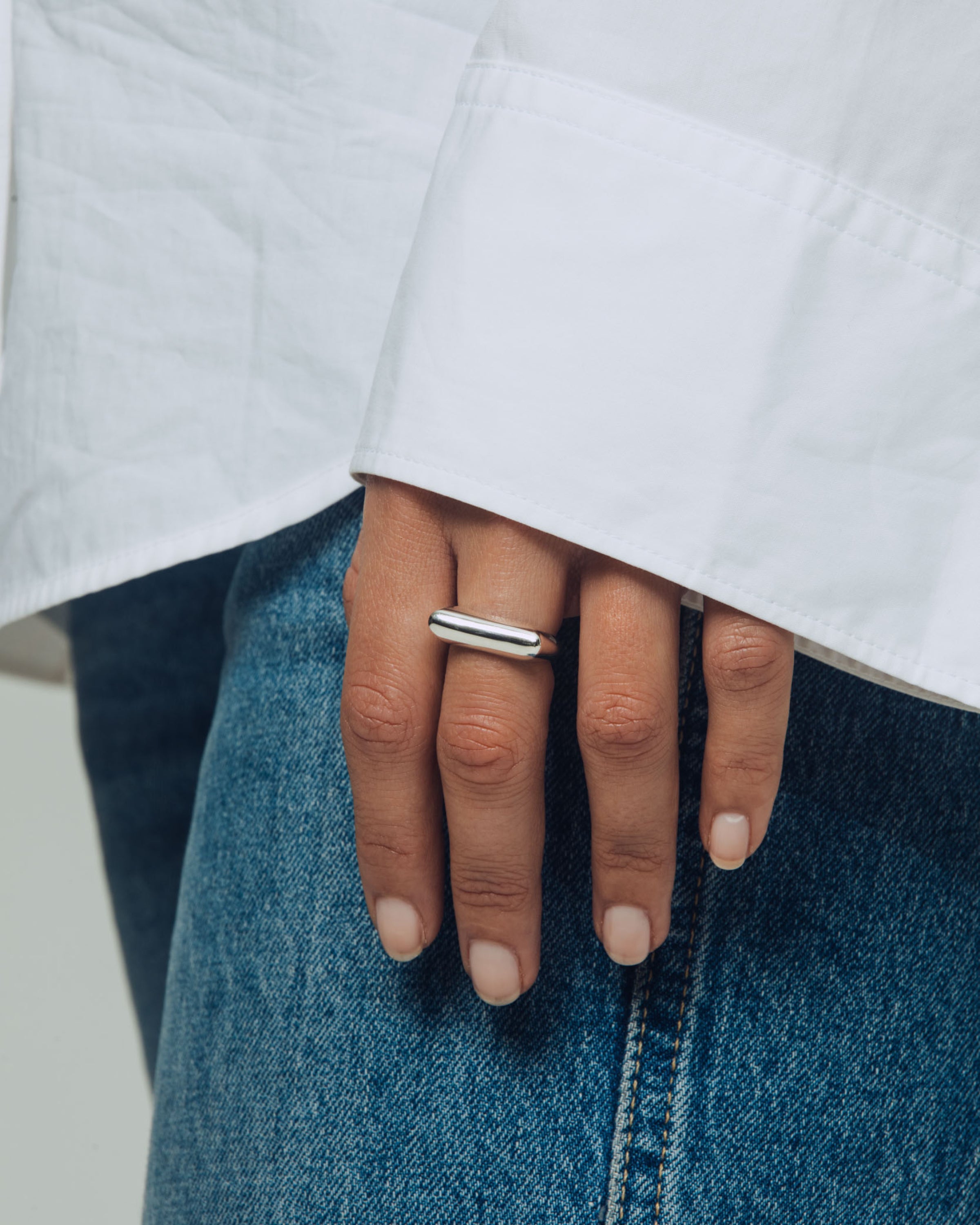 The Sculpt Ring is a statement ring featuring a sculptural design that adds a modern and edgy touch to any look. The chunky and substantial feel of the ring makes it perfect for everyday wear. It matches perfectly together with Sculpt Ring Thick.