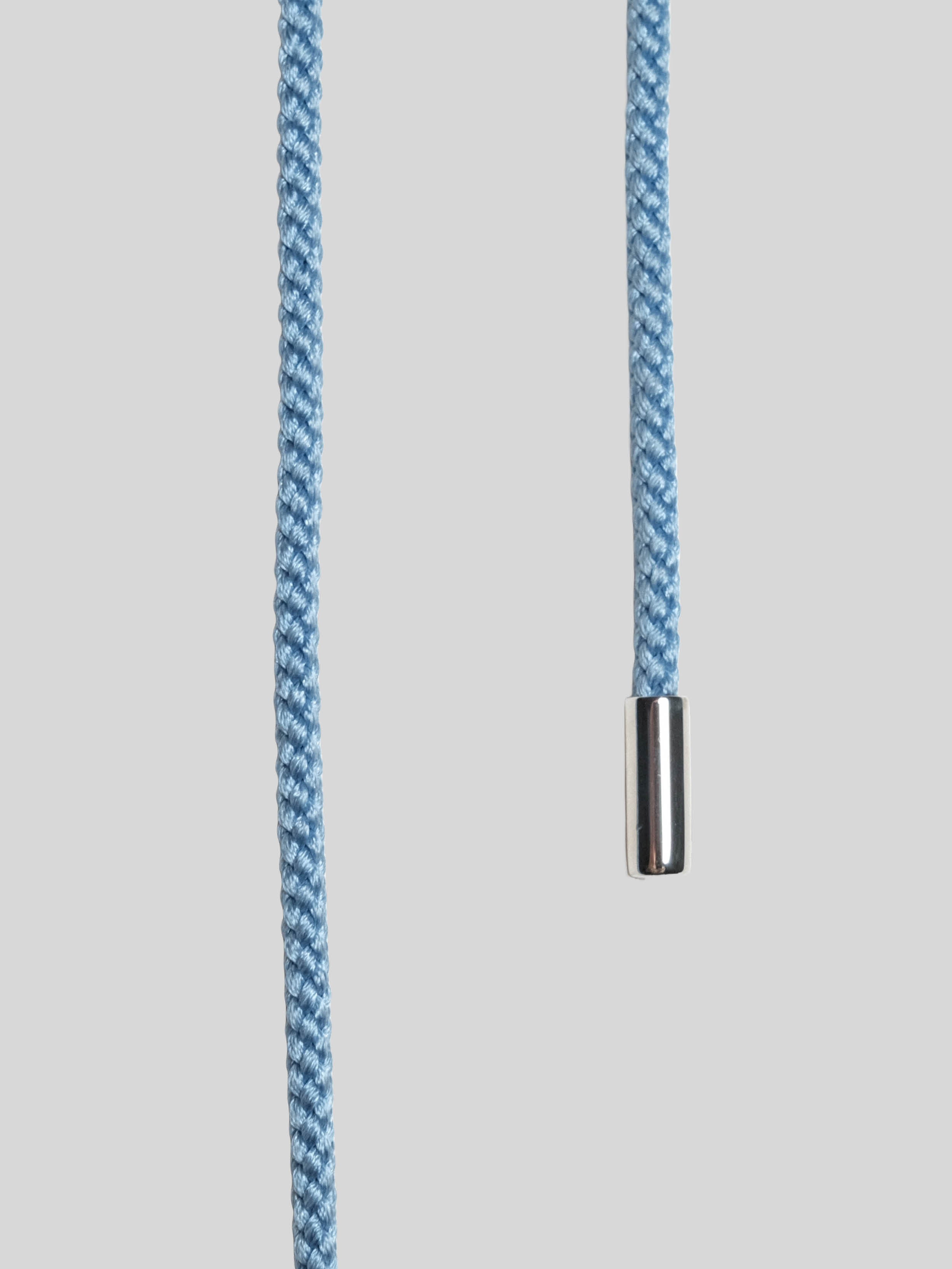 Today, our silk cords retain this heritage, handcrafted in Japan with silver and gold end pieces. This playful piece of jewellery offers versatile wearing options and can be paired with various colors. You can tie the cord around your wrist or neck, with or without a pendant.