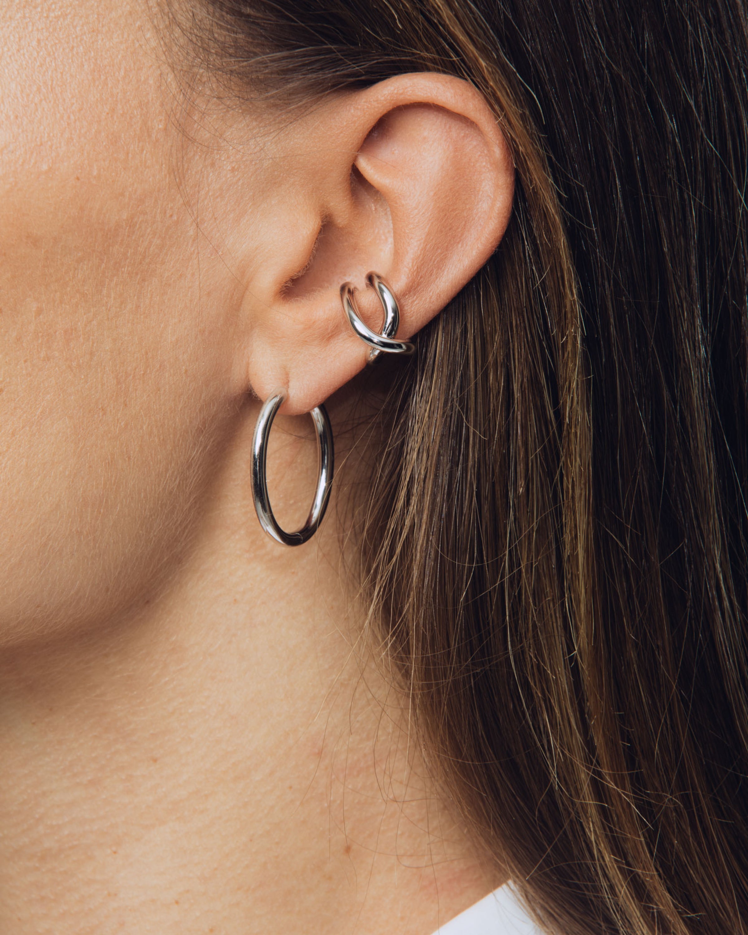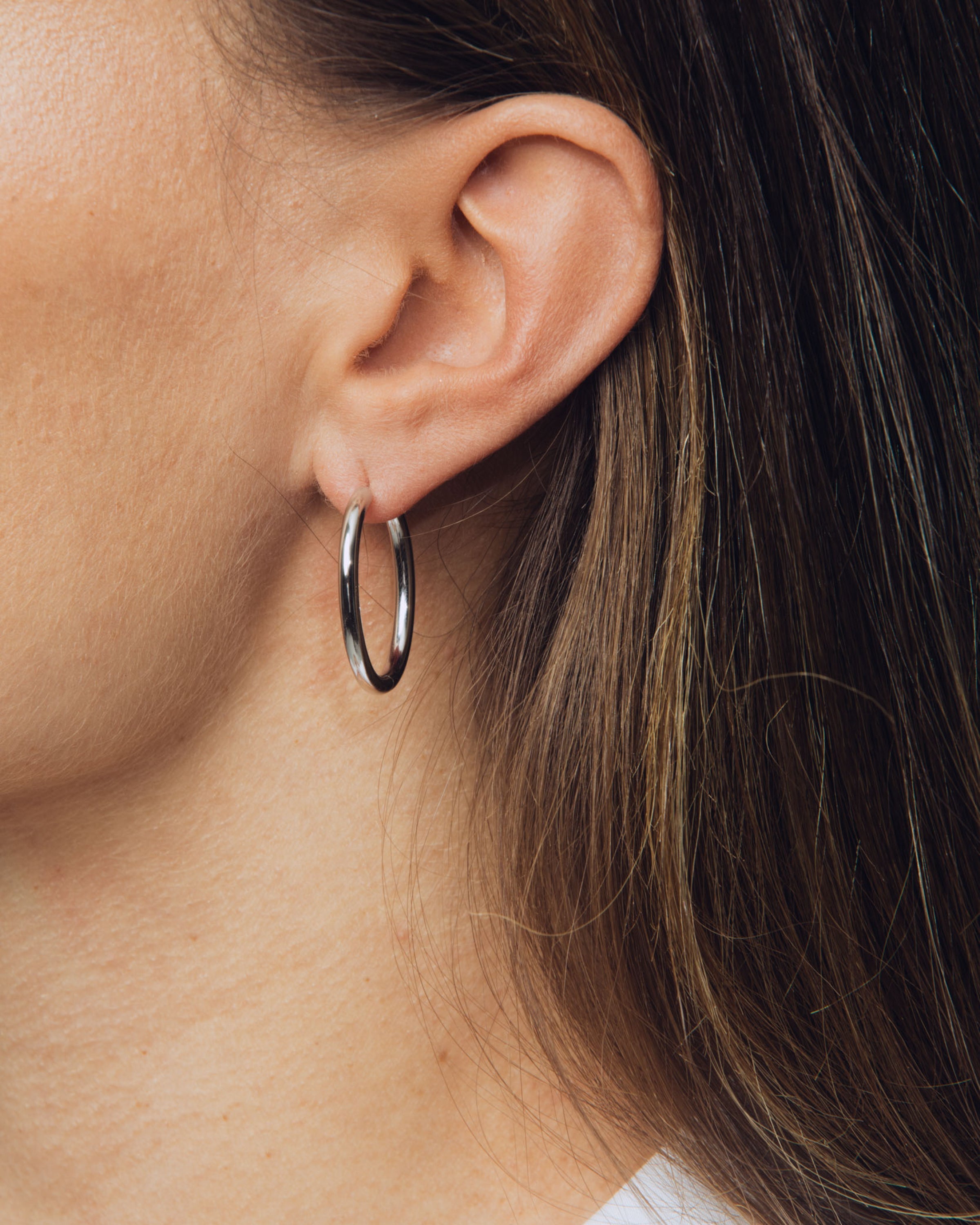 The Slim Hoop is a sleek and streamlined earring that adds a touch of elegance to any look. These versatile hoops are perfect for personalizing your style; wear them alone or stack them with our other hoops for a bolder statement.