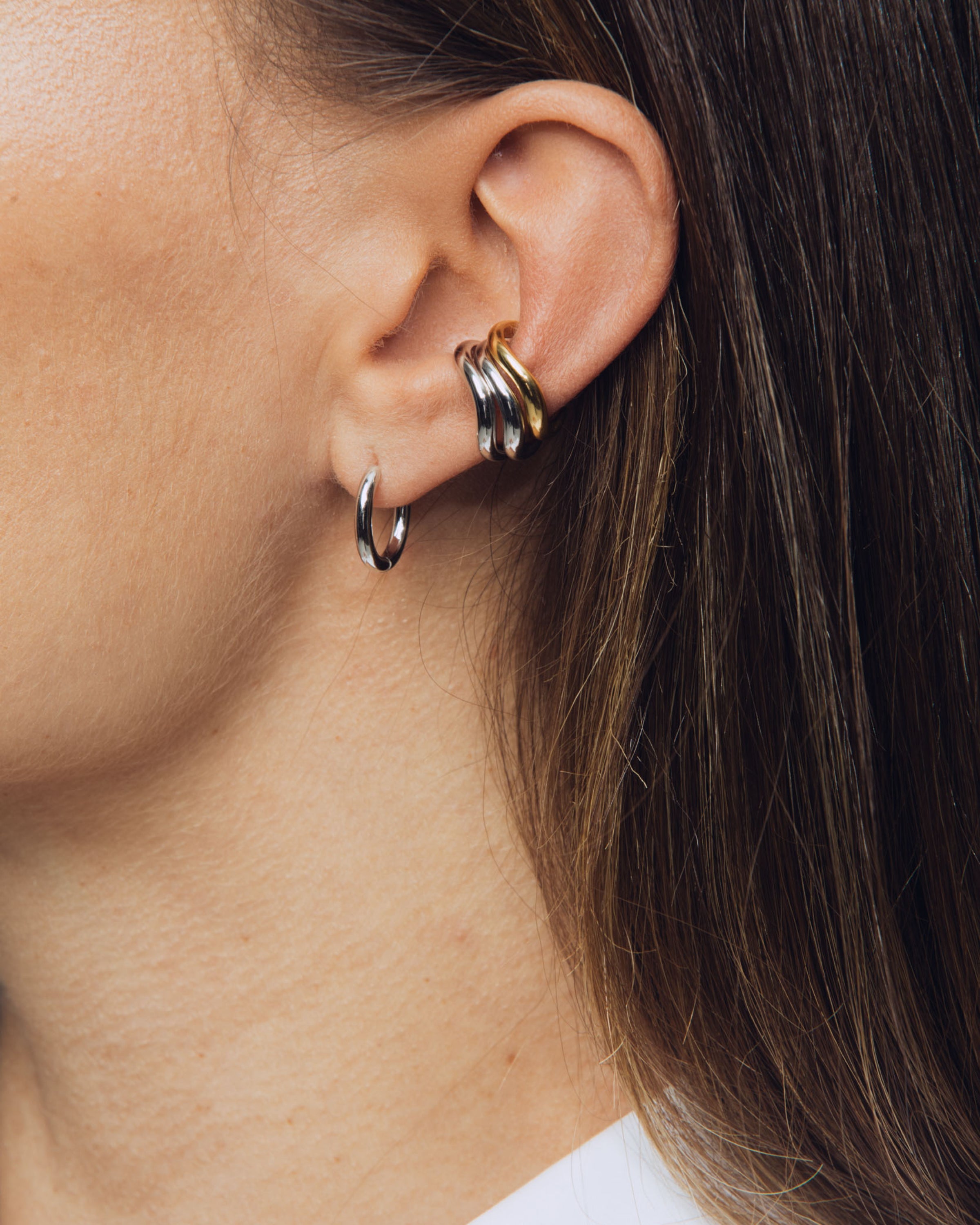 The advantage of ear cuffs is that you don't need pierced ears to wear them. Since every ear is different, there are various ways to put them on. However, it’s generally best to start at the top of the ear, at the softest and slimmest part, and then slide the cuff down to your desired position.