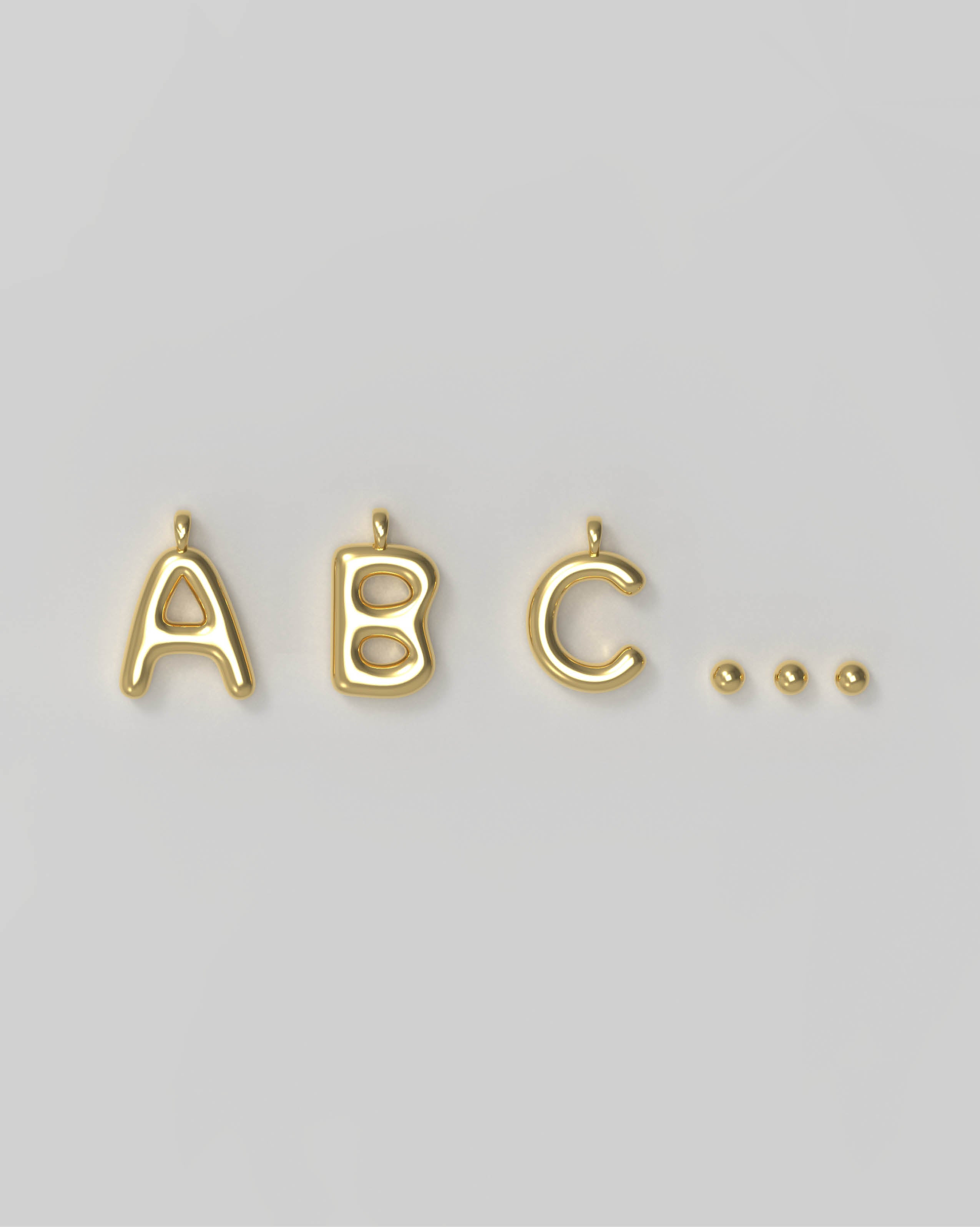 Each letter is carefully designed in our unique font and comes in both small and large versions. The charm is solid, rounded, and has a luxurious feel.