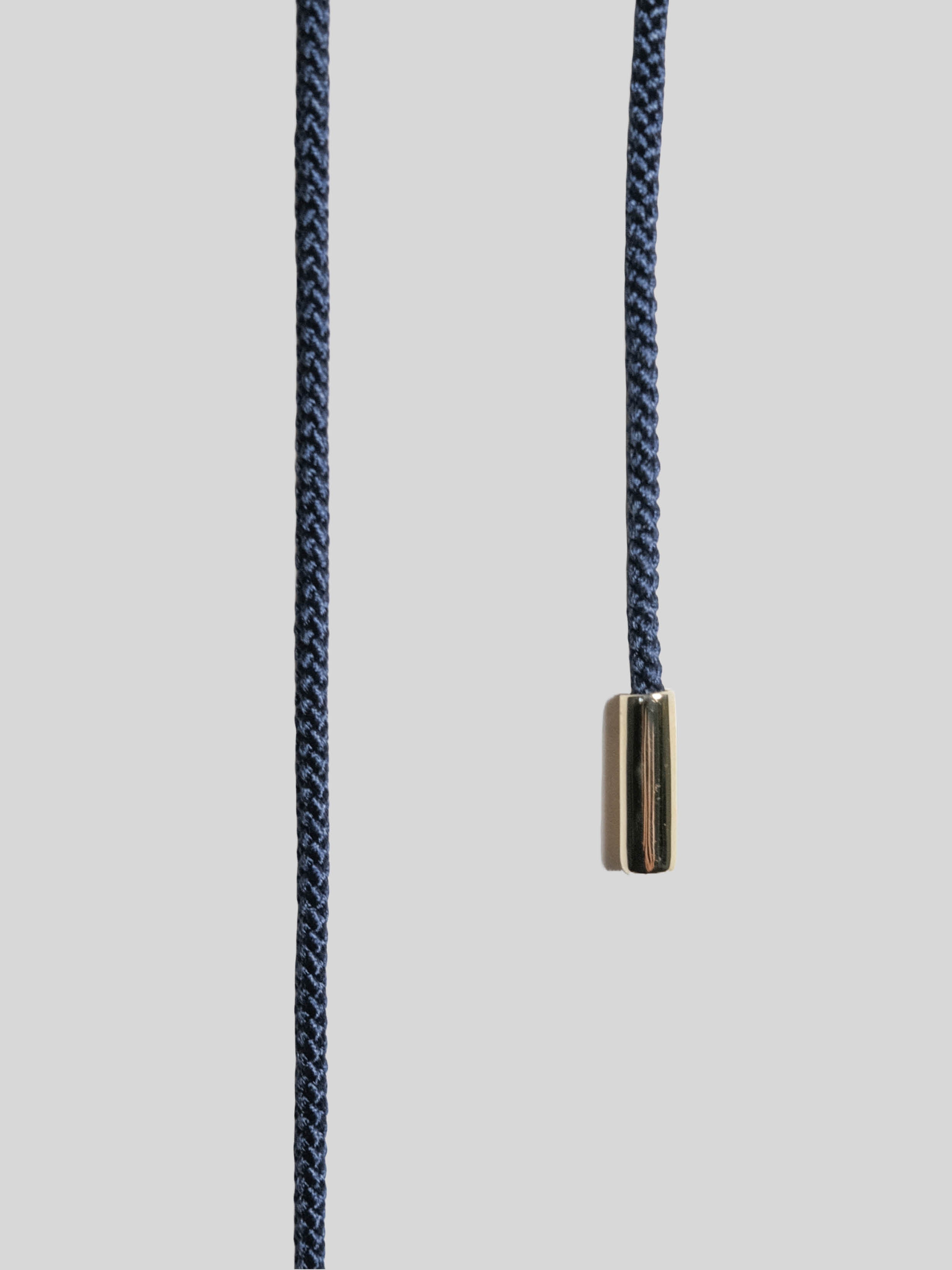 Today, our silk cords retain this heritage, handcrafted in Japan with silver and gold end pieces. This playful piece of jewellery offers versatile wearing options and can be paired with various colors. You can tie the cord around your wrist or neck, with or without a pendant.